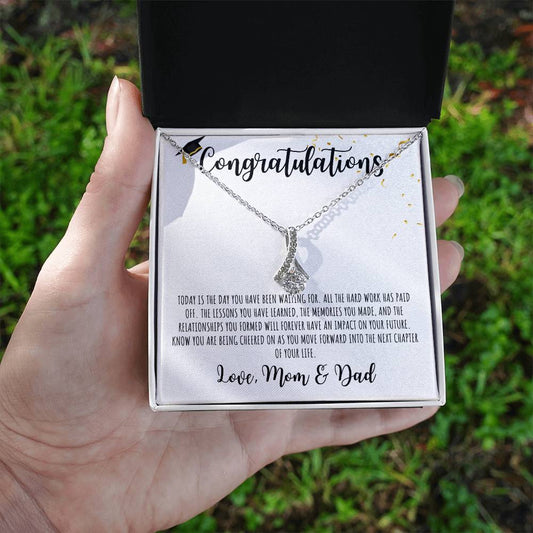 Congratulations Graduate | From Mom & Dad | White Message Card - Alluring Beauty Necklace
